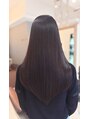 酸熱ダブルEPを使用した酸熱矯正。柔らかで毛先までしっかり艶のある仕上がりに。ハンドブローでまとまり、湿度の影響を受けないのでいつでもサラサラで過ごせます。