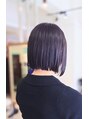 広がりやすいクセげのミディアムボブからスタイルチェンジ&髪質改善とカラー。スッキリしたシルエットのボブにざっくりとした束感を。カラーはシャープになりすぎない程度に明度を落とし、透明感のあるブルーベースのグレージュに。