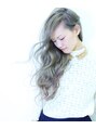 ルーズでけだるい雰囲気のウェーブロングヘアスタイル。 毛先にバイオレットグラデーションで色付けし、アッシュ系カラーで透明感を出したハイトーンのデザインカラーヘア