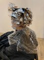 ヘナを毎回染めていたが、今後白髪染めではなくヘアカラーをとの事で、今回は白髪ぼかしブリーチでベースを作っていき、ダークトーンのヘアカラー(白髪染めではない)でベースを埋め次回からヘアカラーの施術のみで白髪をぼかしていくカラーになります。