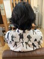 デザインカット以前にパーマをかけていたのもあり少し横のシルエットを潰すようにフォルム調整を行いました。