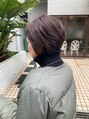 ハイライトバレーヤージュベースの髪質で色を入れてもすぐに落ちてしまうとの事でしたので多くなったハイライト部分をローライトで潰しベースにピンクバイオレットで春を意識したデザインを演出させて頂きました。