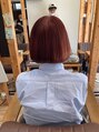 デザインカラーもともと白髪染めベースでブラウンの強いカラーをされておりましたが、今回イメージをしっかり変えたいとの事で一度ブリーチをしてからチェリーピンクのお色味をご案内させて頂きました。