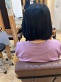 春に入り暖かくなってきたので、スッキリ首を出すグラデーションボブをご提案させて頂きました。梅雨前来月縮毛矯正をかけることから今回はカットラインを軽くしすいたりせずに縮毛矯正の後に毛先を軽くするご提案をさせて頂きました。