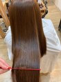 酸性縮毛矯正通常の縮毛矯正と比較すると仕上がりが柔らかくしなやかさが出るので硬さを気にされている方にとてもオススメです伸びてきた時にクセとの繋がりも柔らかいのでもちの感覚が伸びるのもとても良い特徴と言えるでしょう