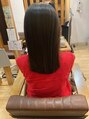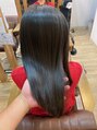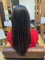 乾燥すると表面がパサつく髪質なので内部補強に高分子ケラチンで安定感を表面のメンテナンスに油膜補強と形状記憶補強のトリートメントをご案内させて頂きました。