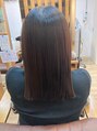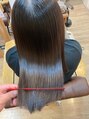 アイロン等の損傷部位が中間毛先にかけて広がっておりましたので、髪の毛と同じ成分の高分子ケラチンを使用して内部補強を促しコーティングをする事で地毛の状態からよりも滑らかな髪質にしました。