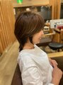 髪質が固く膨らみやすい性質なので今回はミディアムウルフでコンパクトにフォルム調整を行いました