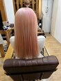 根本のリタッチ後黄ばみ取りに紫系に対してピンク系のカラーシャンプーをいれ若干ピンク色に傾けることで抜けてきた時の黄ばみが出ないように調整させて頂きました