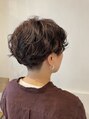 かりあげマッシュボブにパーマをかけたおしゃれなショートスタイルです。元々直毛で硬い髪質なのでパーマで動きを出す事でカジュアルな雰囲気にさせて頂きました。