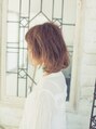カットは肩につくくらいの長さにカットし、ワンレングスベースで切りました!重たくなりすぎないようにブリーチで色を抜いてオンカラーで明るめのベージュをのせました!毛先ワンカールとトップの毛だけウエーブをつけてふわふわに!