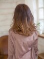胸上くらいの長さでトップにレイヤーを入れてふんわりと。カラーは一度ハイライトを入れてオンカラーをし、下ほど多くハイライトを入れることによりグラデーションっぽくなるようにしました!首あたりからくびれをつくることで外にハネてくれます。