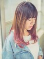 根元からハチくらいにかけてはブリーチせずに、そこから下はブリーチで明るく!ポイントとしてはきっちりわけてぬると境目が目立つのでぼかすようにしてグラデーションにしました!また顎下も同様にきっちり分けずにピンク系カラーに!インナーでも可愛いです