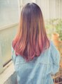 根元からハチくらいにかけてはブリーチせずに、そこから下はブリーチで明るく!ポイントとしてはきっちりわけてぬると境目が目立つのでぼかすようにしてグラデーションにしました!また顎下も同様にきっちり分けずにピンク系カラーに!インナーでも可愛いです