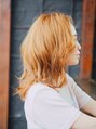 ウェーブが可愛いミディアムスタイル。全体的にウェーブを作り抜け感をだしながら、決めすぎない雰囲気が◎明るめのカラーも合わせて元気な印象に!スタイリングは全体をルーズに巻いてトリートメントワックスを髪全体に付け散らすだけの簡単スタイル!