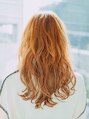カットは後ろから丸く見えるロングスタイルで印象に軽さを出しました。カラーは赤みが無いブラウンベージュです。スタイリングは中間毛先を中心に巻くのですが、抜け感を出すため所々ストレートな部分も作っています。