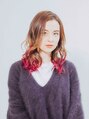 明るめのキャラメルカラーをベースに毛先はビビットなレッドのグラデーションカラーで強めな印象に!ミックス巻きにしてスタイリングはつけすぎないことで重さがでにくくなるのがポイント!【相模原駅/学割U24/イルミナカラー/白髪染め/TOKIO】
