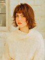 前髪をオン眉にした個性派ウルフです。ウルフなのでレイヤーがしっかりと入っている為、ストレートアイロン又はカールアイロンでワンカール巻いた後にスタイリング剤を揉みこめば簡単にスタイリングすることができます。カラーは透け感があるベージュ系です。