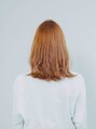 カラーは今が旬のオレンジ系カラーでツヤと透明感の出るミディアムスタイルです.女の子らしいスタイルのなかにもラフで飾りすぎないがおすすめ!毛先から中間と顔まわりをゆるふわにして動きをだし立体感をだしました。前髪はランダム感を出してバランス◎