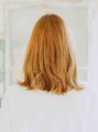 カラーは今が旬のオレンジ系カラーでツヤと透明感の出るミディアムスタイルで女の子らしいスタイルのなかにもラフで飾りすぎないがおすすめ!毛先から中間と顔まわりをゆるふわにして動きをだし立体感をだしました。前髪はランダム感を出してバランスよく!