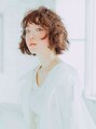 顎下レングスのショートボブにランダムで大きめのカールをつけたスタイルです。全体に大きくカールがかかっているので、しっかりと段をいれてボリュームがですぎないようにカットしています。軽めのスタイリング剤を揉み込むようにしてつける!