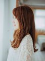 重ためのロングヘア。ロングで重めだと暗い印象になりますがカラーがオレンジ系なので、抜け感がでます。スタイリングは32ミリのコテで中間から毛先を緩めに巻きます。仕上げにオイルをなじませ完成【相模原駅/学割U24/イルミナカラー/白髪染め/TOKIO】