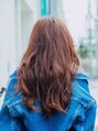 赤みのある柔らかいブラウンカラーはゆるく巻いてより柔らかさとふんわり感を出すことができます。センター分けの前髪は根元を立ち上がらせて外巻きにすることで小顔、効果にもなります。あまりレイヤーを入れすぎないカットでまとまりが出るようなスタイルに