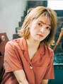 ぱっつんボブに顔周り、表面にレイヤーが入っています。前髪も薄めに作り、全体的に隙間や透け感をプラスしています。カラーはブリーチをしてベージュ系カラーをオンカラーしています。コテで毛先は外ハネに表面の中間はカールというよりうねりを入れて◎