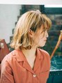 ぱっつんボブに顔周り、表面にレイヤーが入っています。前髪も薄めに作り、全体的に隙間や透け感をプラスしています。カラーはブリーチをしてベージュ系カラーをオンカラーしています。コテで毛先は外ハネに表面の中間はカールというよりうねりを入れて◎