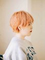 マッシュベースのショートスタイル!全体的にラフ感が出るように毛先にランダムにハネを加えてカジュアルなイメージに!ヘアカラーはショートにピッタリのペールオレンジ系のハイトーンカラーで小慣れショートがオススメ!