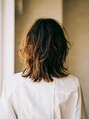 全体の毛先に大きめカールを低温デジタルパーマでかけてあるので、ドライヤーの風で根元をふんわり乾かし、全体が8割程乾いてからワックスを揉み込めば、毛先がランダムに動くミディアムヘアスタイルに