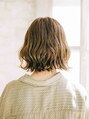 あご下の長めボブ。バングの幅は短めで今どきバングに!スタイリングは毛先が外はねになるよう波ウェーブでまいています。スタイリング剤はトリートメントバームやオイルで艶のあるウェット系に仕上げるのがおすすめです!