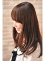 キレイ&可愛いナチュラルロングです。サラッとした質感は好感度ナンバーワン!前髪にそっとポイントカラーをのせることでシンプルな立体感をだしました。ハイライトもしてみたいけどチャレンジしにくい方にオススメです♪全体は8LVモカブラウンです☆