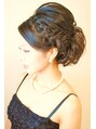 両サイドに編み込みを入れてバックスタイルはカールを低めにまとめたエレガントスタイルです。バックスタイルも華やかですよ!