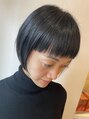 ○お客様のスタイルです。【スタイルは、ブックマークをしてご提示よろしくお願い致します】前髪パッツン気味の大人ショートボブ動きやすくカットしていますのでワックスでもみこむだけでの朝楽スタイルリング ショートならお任せください!