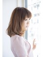 カラーはアッシュベージュで透明感、艶感プラス。ひねりの入ったワンカールで柔らかいとろみ系愛されボブディの出来あがり☆表面に入ったレイヤーと軽やかなラフカール。丸みのある前髪はラウンド前髪にもできる2ウェイバング。(セミディ、ミディ)