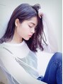 セミウェットが今年らしい、ワンサイドロブ。かきあげOK、耳かけもOKな前下がりミディスタイル。#ダンバルモリ#切りっぱなし#ボブ#ロブ#グレージュ#バイオレットグレージュ#ブルーブラック#ラベンダーアッシュ#ハイライト#グラデーションカラー#黒髪#暗髪