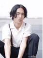 センターパートのメンズボブ。分け目を変えてグランジスタイルにも♪#ネープレス#刈り上げ#スマートマッシュ#マッシュ#ボブ#ショート#サイドパート#センターパート#メンズ#メンズパーマ#アップバング#トラッド#ニュアンスパーマ#好感度#ツーブロック#束感