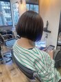【気に入って頂いたスタイルは、ブックマークをしてご提示ください】アゴラインの前下がりボブ。丸みシルエットのボブに、ベージュブラウンが重く見えがちな硬い髪も柔らかく見えます。20代30代40代50代と幅広い年齢のお客様にご来店して頂いてます。
