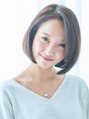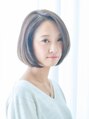 小顔に見せる前髪やフェイスラインのこだわりカットで黒目の外側から斜めバングに目尻を引き締めさせる髪をつくり、全体をAラインのパーマボブに作っています。シルエットを大きく作り、アゴに向かって内巻きにすることでひし形バランスの小顔へ導きます。