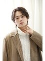 センターパートのミディアムヘアをトレンド感のあるウルフスタイルに。 かき上げヘア トランクスヘア くせ毛風パーマ ソフトツーブロック フェザーマッシュクラウドマッシュ セミウエット無造作ショート 好感度 1分スタイリング ツーブロック