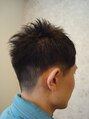 サイドと後ろは刈り上げて、顔周りに少し長さを残した2ブロックスタイルです。伸ばし途中の方やすっきりさせたいけど長さがほしい方におススメです。