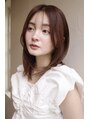 全体は鎖骨したの長さで顔周りにレイヤーを入れたミディアムスタイル。レイヤーは広がりやすいイメージの方も入れ方次第でまとまりのある扱いやすいスタイルになります。シースルーバングで抜け感を◎表参道