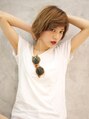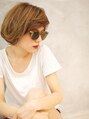 クセっぽいゆるめランダムカールに流し前髪のスタイリングをして、大人グラムで甘辛なニュアンスのショートボブのスタイルに!今回イノセントカラーでややクールめな印象を演出して、モードでルーズな無造作外国人風を意識して。エフォートレスな印象に!