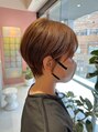 ミニマルにまとまるショートヘアです!コンパクトにまとまるポイントは襟足と後頭部のポイントの位置です♪サイドは耳掛けも出来る長さ設定なので少し雰囲気をかえても○お客様はくせ毛さんなので全体に艶が出る位の弱めにストレートをかけて時短ヘアに!