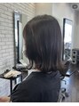 今回のカラーは根本は白髪染め毛先はオシャレ染めののハイブリッドカラー。色味はカーキグレージュでカーキ系カラーにグレーとベージュをプラスすることによって柔さと深みを表現する事が出来ます。ボブの方は重たくなりやすいので透明感カラーはオススメです