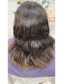 人生初めての縮毛矯正をかけるお客様、癖が強いのが悩みでしたがしっかりとストレートに!癖の事でお悩みの方、髪質やダメージに合わせた薬剤取り揃えております!