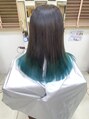 ワンブリーチからのターコイズグリーン。全部ブリーチするのは怖いし痛みそうでできないけど、髪色を楽しみたい!そんな方にピッタリ!裾カラーは期間限定でのカラーに最適!毛先を切ってしまえばリセットできます♪