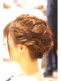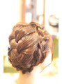 両サイド編み込み、センターは斜めにあみおろしました。 カチューシャや、飾りがなくてもボリューム感があり、すてきですね♪