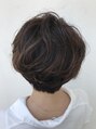 ふんわり大きめのパーマで柔らかさを出し、後ろはすっきり前下がりのスタイルにしました。色はベージュパープルでハイライトも入ってます。